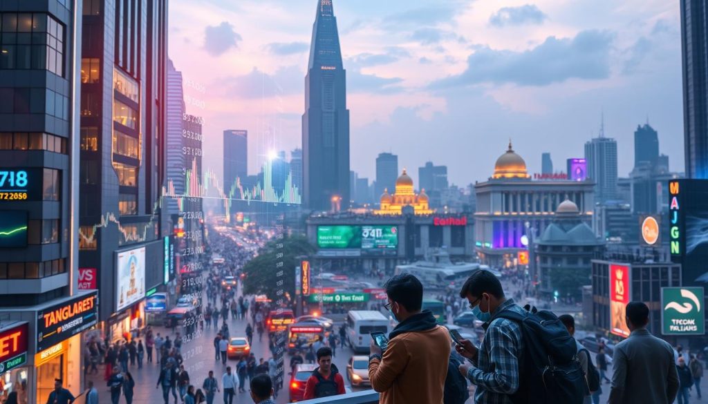 A futuristic city skyline at dusk, with glowing holographic screens and digital security meshes overlaying the buildings. In the foreground, a group of people using sleek, gesture-controlled devices to manage their social media profiles and digital identities. The scene is bathed in a warm, amber glow, conveying a sense of technological advancement and the importance of online privacy. The backdrop features the https://bestuptoeveryday.com/ logo, hinting at the cutting-edge security solutions needed to protect against emerging cyber threats in the social media landscape.